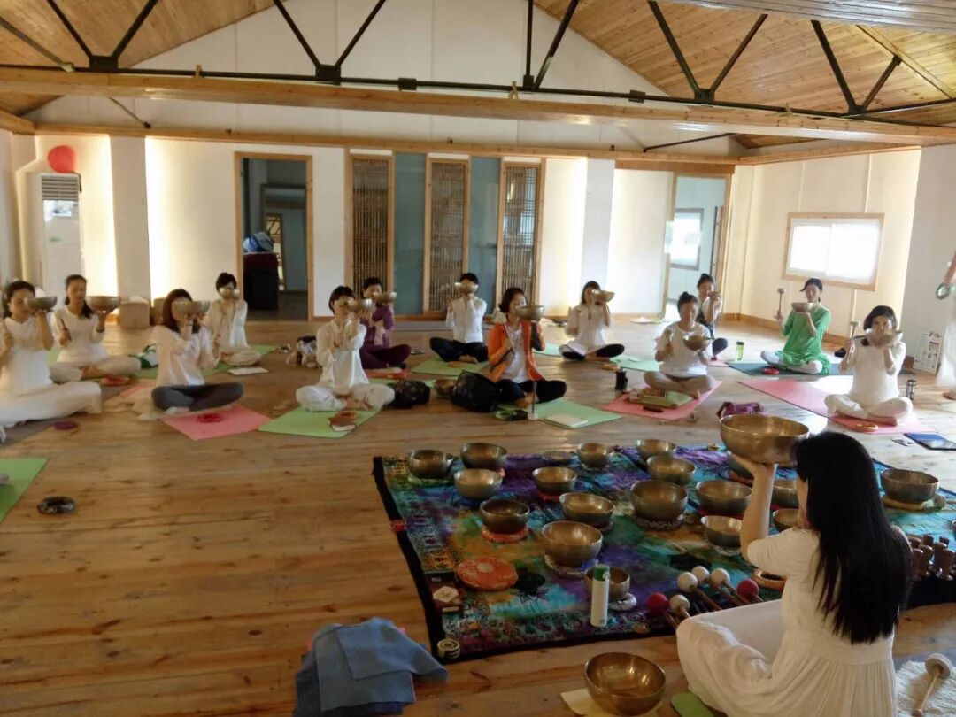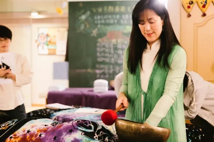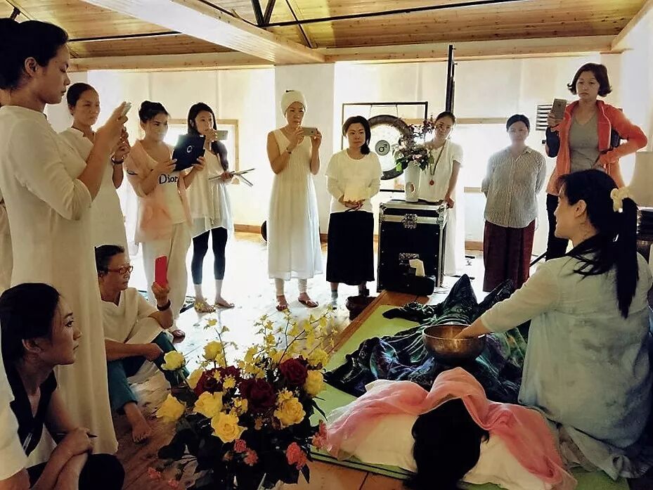 带着爱和静心,在世界各地进行近百场颂钵音疗教学,