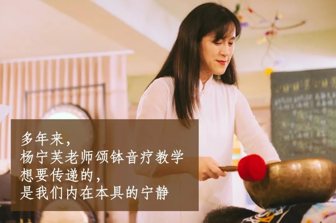 楊寧芙老師,光音仙境頌缽音療創辦人。因為自閉症的兒子被幼稚園退學,加上照顧孩子,自己身心俱疲,因而堅定地踏上靈性修習之路,尤其發現聲音療癒對孩子的幫助,讓她用心鑽研德國、美國、峇里島、印度、尼泊爾、歐洲....9种不同的頌缽音療系統,前後跟隨十几位國際頌缽老師,並學習泛音詠唱、生命之聲詠唱、音叉,水晶缽、銅鑼。